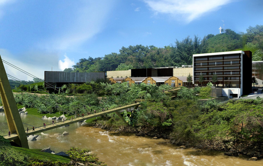 El Centro comercial El Puente debido a su orientación fue diseñado entendiendo las condiciones del lugar: utilizando materiales de construcción y acabados locales, aprovechando los recursos de vientos, iluminación, vegetación y lluvias con el fin de disminuir el impacto ambiental.