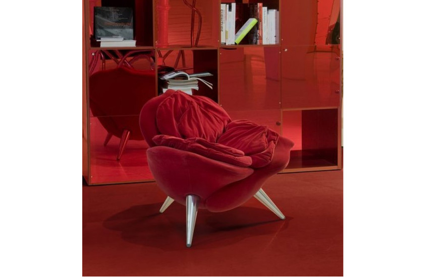 Diseña la silla Rosa (foto) para la firma Italiana Edra, exhibida en la feria del mueble de Milán en abril. Es un sillón de gran lujo, una escultura en tela y espuma, muy femenina, inspira ternura y suavidad, parece una autentica rosa, con sus pétalos tapizados a mano en terciopelo. Acogedor y confortable, definido para interiores románticos. Se roba la atención en cualquier ambiente.