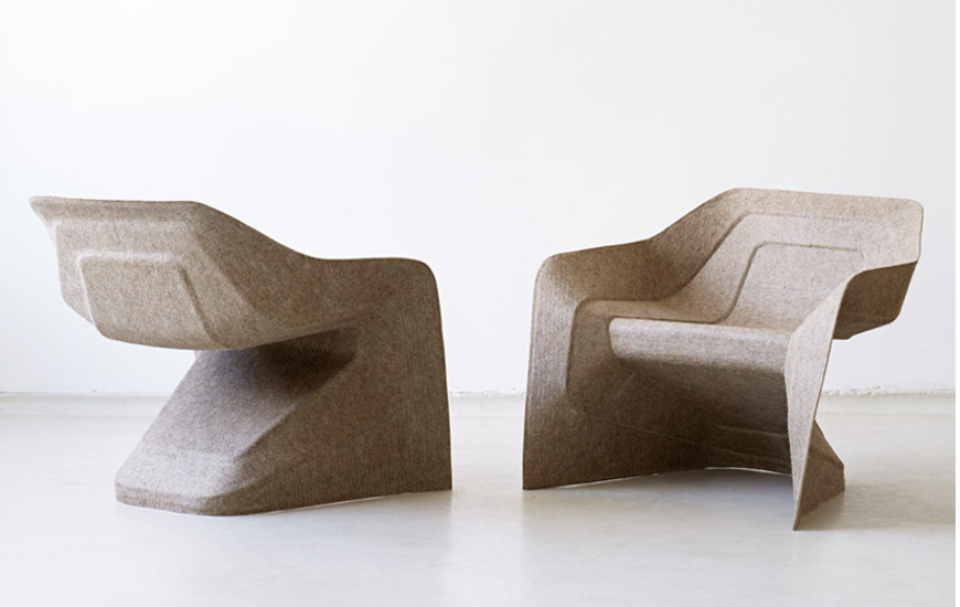 El moldeo de la silla parte de una lámina conformada en un 70% por fibras naturales de cáñamo, utilizando un aglutinante de Basf, el cual al endurecerse por calor durante el proceso de curado no arroja a la atmosfera ningún elemento toxico, solamente agua.